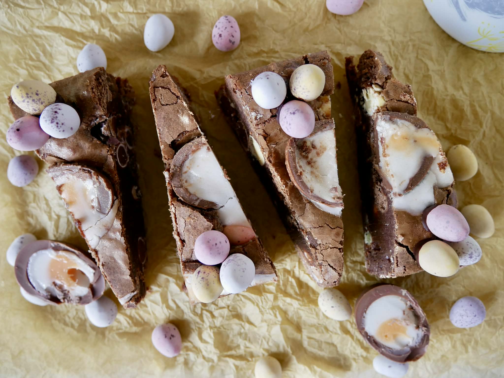 All the Easter goodies! Rich Belgian chocolate brownie packed full of Easter chocolate fillings. Think Creme Egg, Mini Eggs, Caramel eggs.
