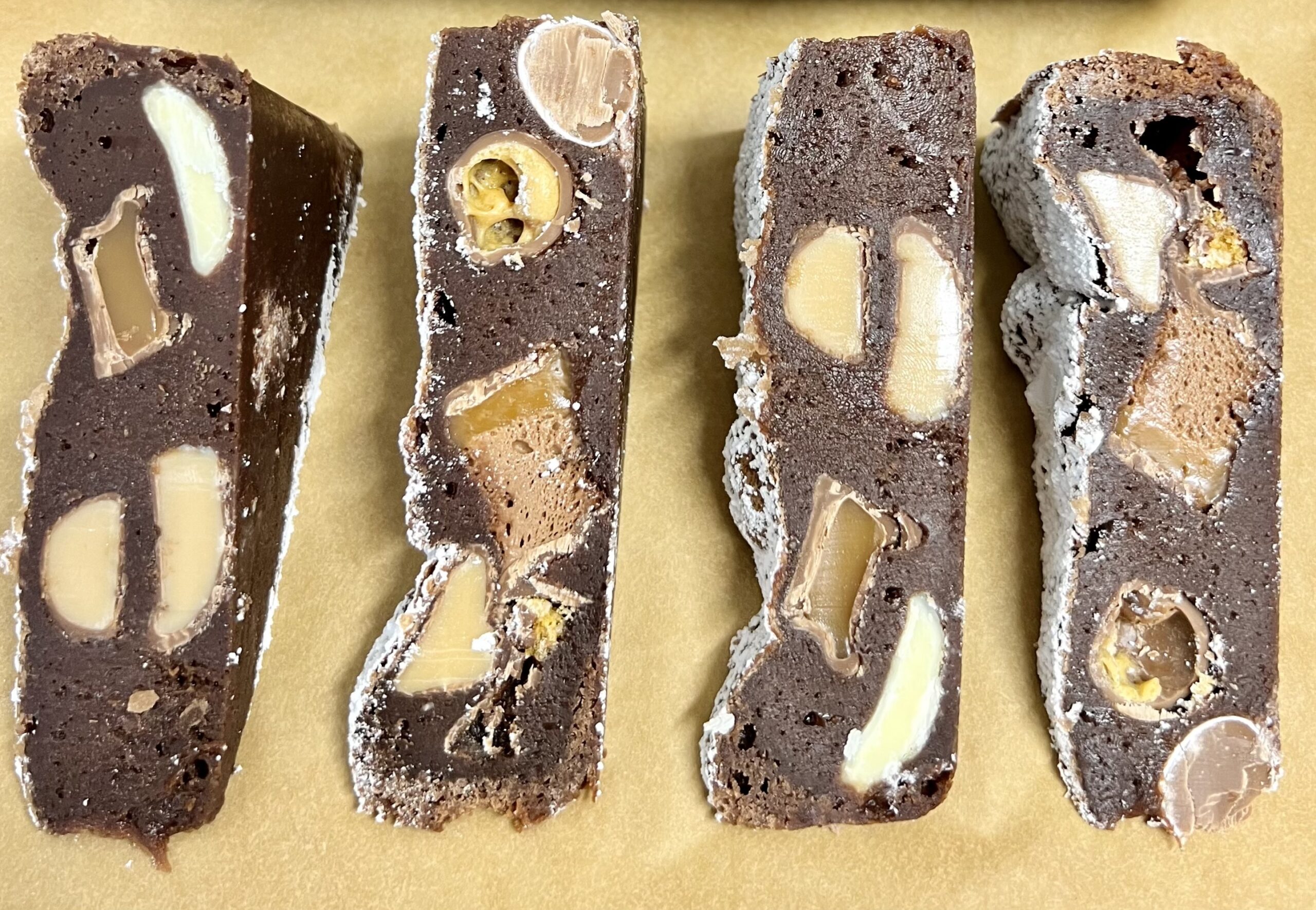 The one that started it all! Rich Belgian chocolate brownie packed full of fillings- Fudge, Crunchies, Malteasers, Mars Bar, Rolos, white chocolate, Mini Eggs and Minstrels. Gloriously good, with a surprise in every bite.